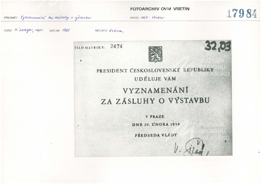 Předmět: MEZ vyznamenání za zásluhy o výstavbu