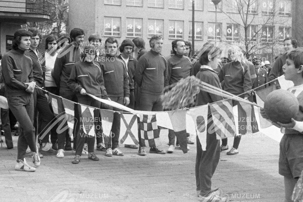 Obsah snímku: První máj - příprava průvodu, Václavík, Švestka, Minařík, Navrátil R., Navrátil L., Kalinová