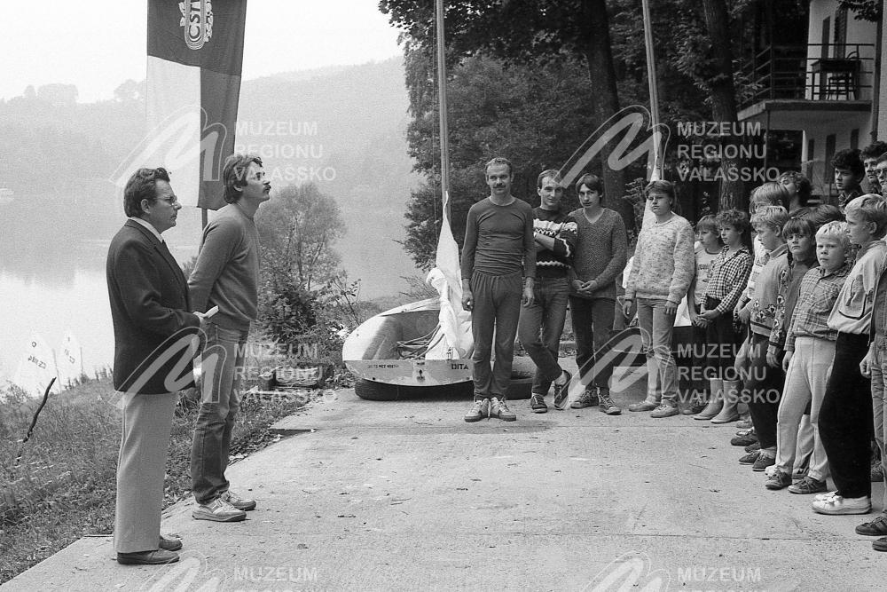 Obsah snímku: Nástup závodníků před závodem - Matějovský, Pečenka, Navrátil J.