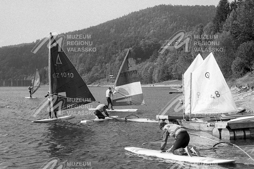 Obsah snímku: Lodě třídy Optimist a Windsurfing před závodem