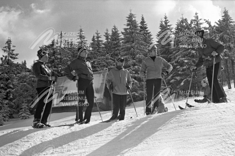 Obsah snímku: Zimní pobyt skupiny studentů VUT FE na chatě Kyčerka Slovanu Vsetín