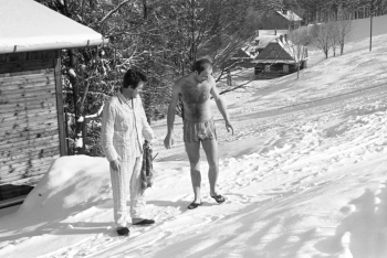 Obsah snímku: Zimní pobyt skupiny studentů VUT FE na chatě Kyčerka Slovanu Vsetín