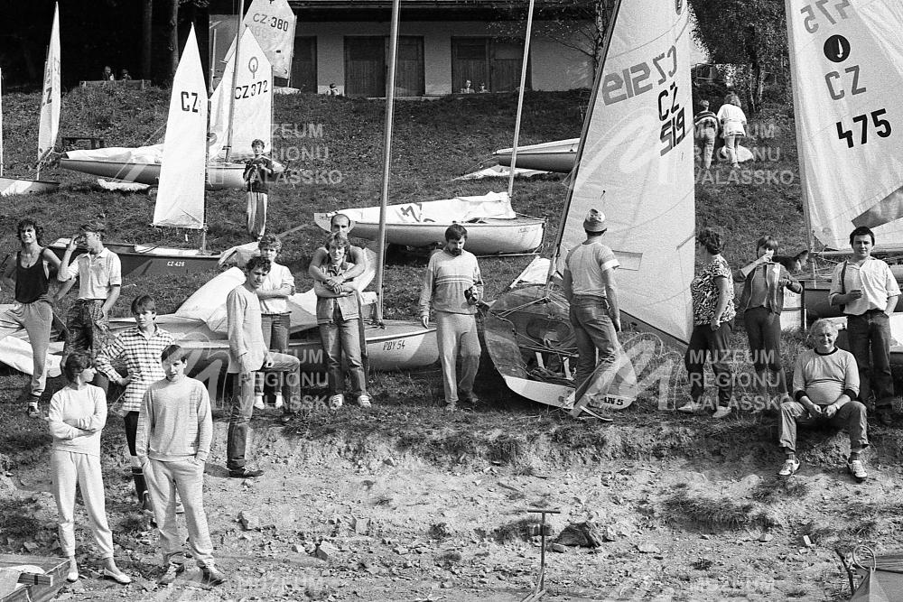 Obsah snímku: Závodníci před závodem pod loděnicí