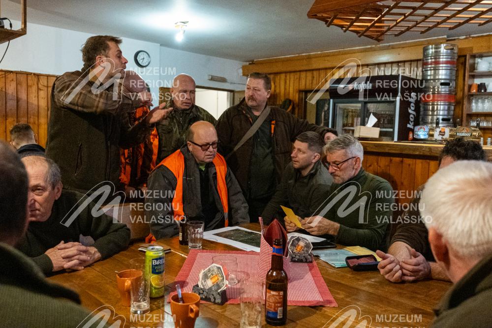 Obsah snímku: Rozdělení závodčích, porada před naháňkou